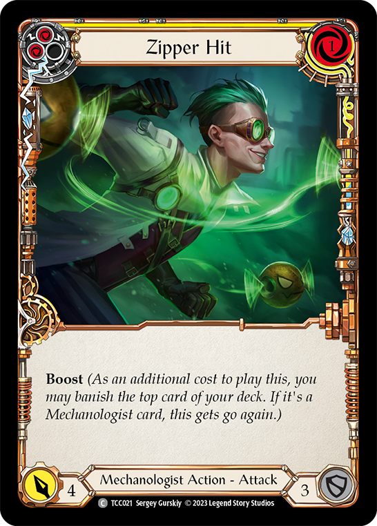 Boost (As an additional cost to play this, you may banish the top card of your deck. If it's a Mechanologist card, this gets go again.)
